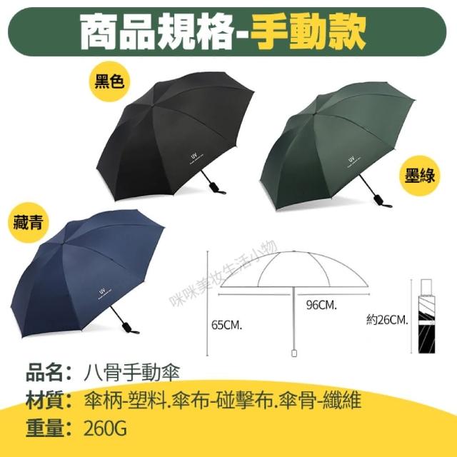 咪咪購物8骨折疊傘|手動款|一入(摺疊傘 遮陽傘 手動傘 輕便傘 黑膠傘 自動摺疊傘 雨傘 抗UV兩用傘)