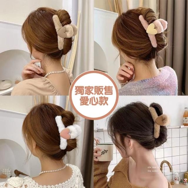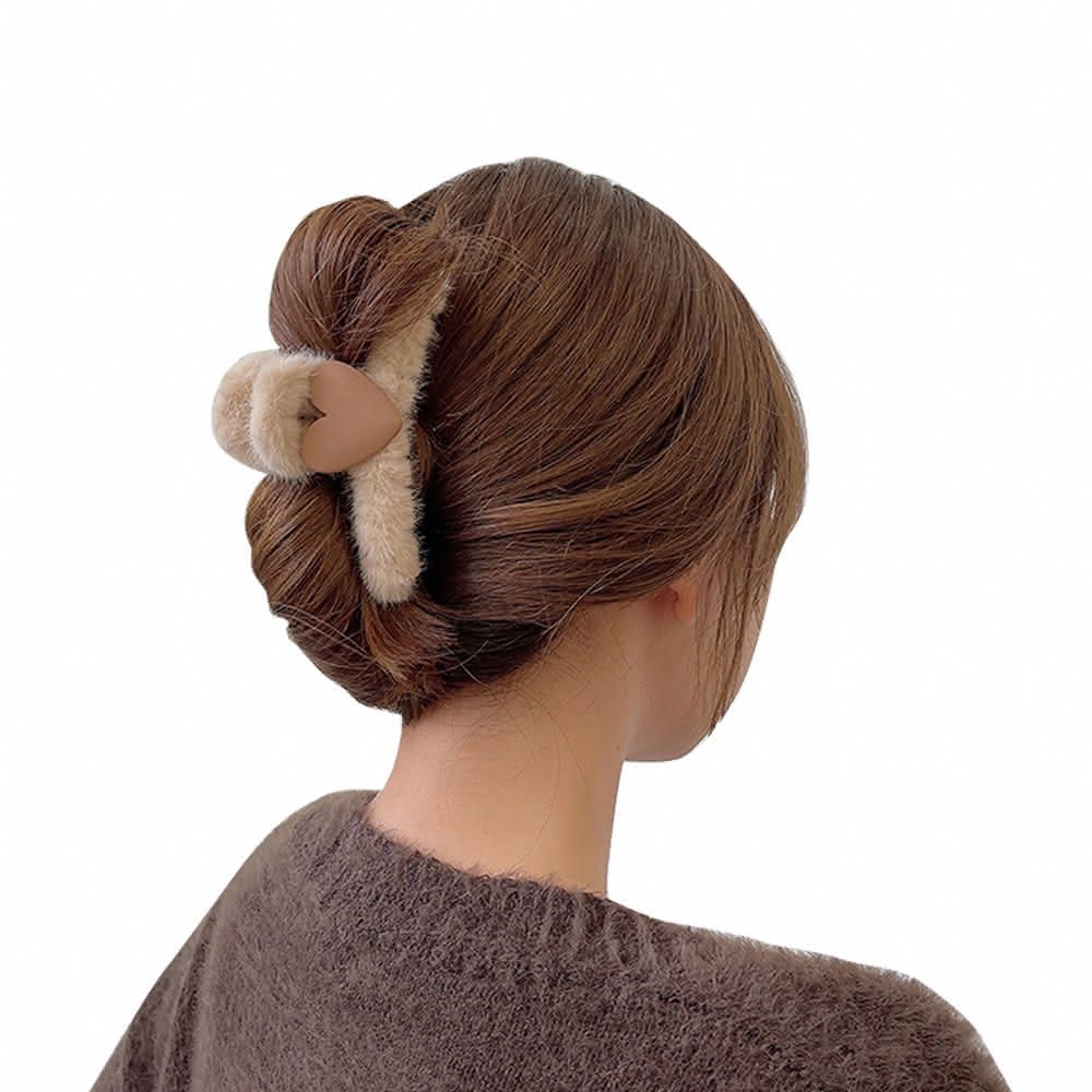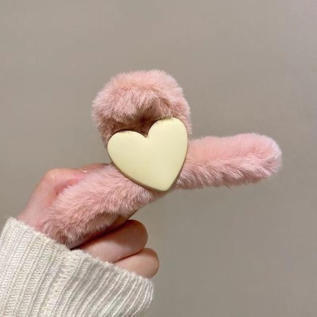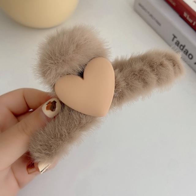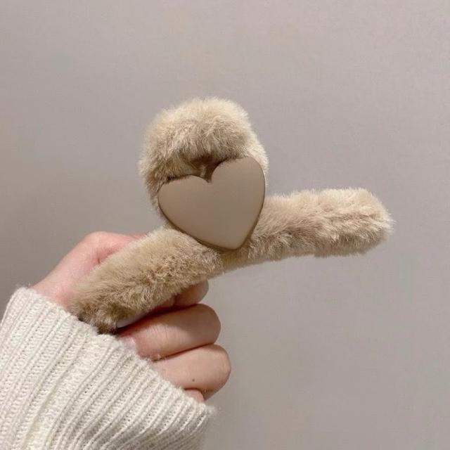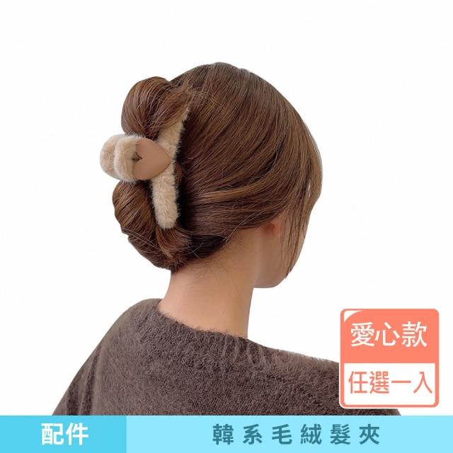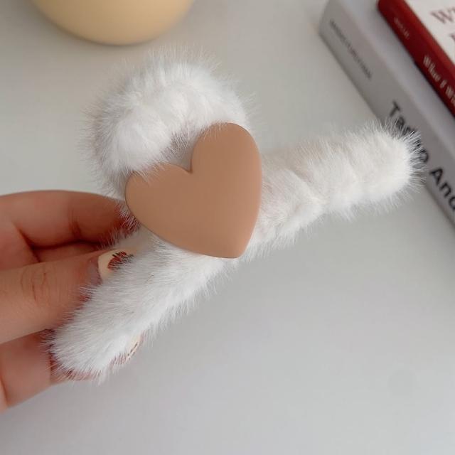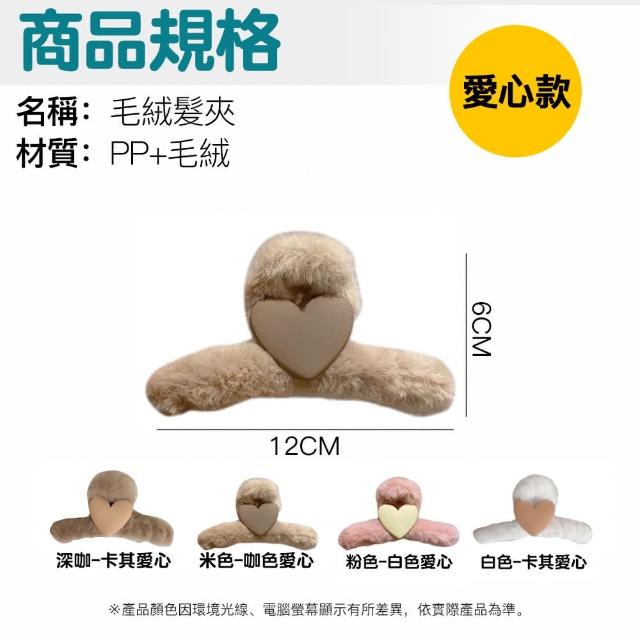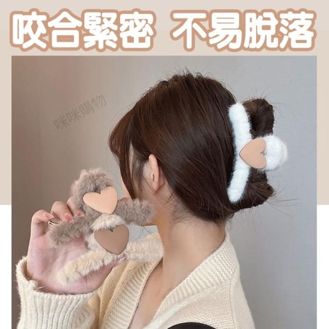 咪咪購物韓式毛絨髮夾|愛心款|一入(毛鯊魚夾 抓夾 簡約毛毛夾 絨毛髮夾 毛絨髮夾 韓系髮夾 毛絨絨款 毛絨鯊魚夾 甜美髮夾 髮夾)