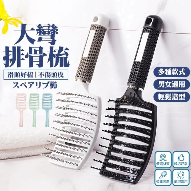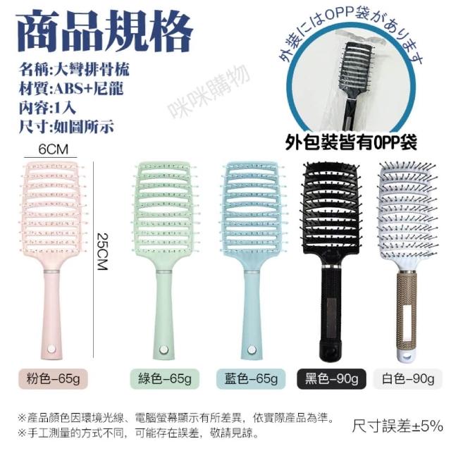 咪咪購物大彎排骨梳|一入(空氣髮梳 排骨梳 九排梳 弧形梳 濕髮梳 蓬鬆梳 造型梳 按摩梳 美髮梳 寬齒梳 髮梳 梳子)