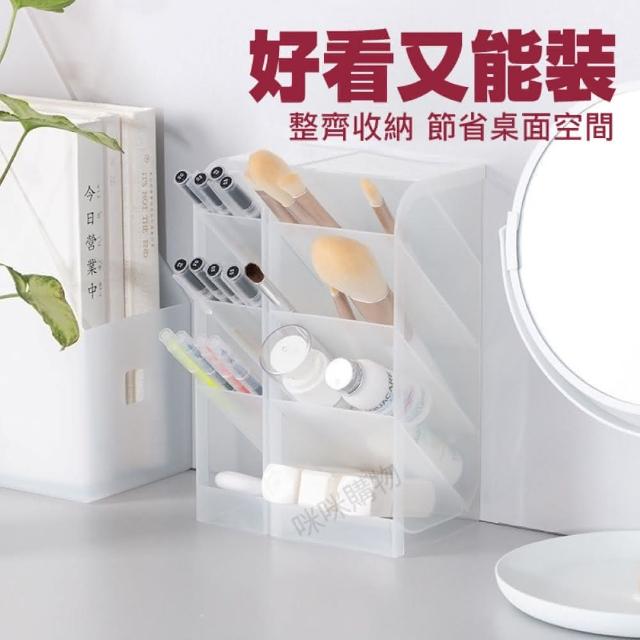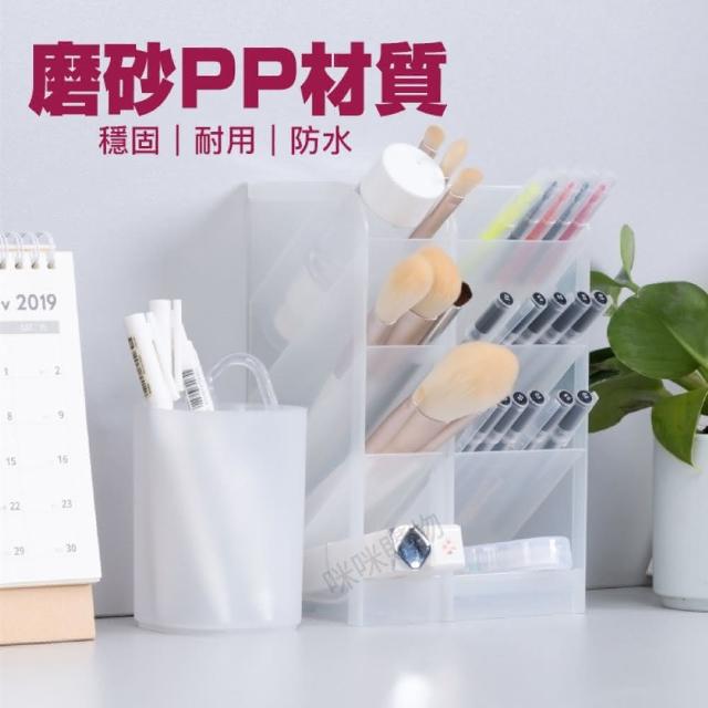 咪咪購物斜插式筆筒|四格方形大號|一入(多格分隔筆筒 透明筆筒 斜筆筒 多功能筆筒 筆收納 筆桶 INS磨砂質感 辦公室文具收納 筆筒 筆筒收納盒)