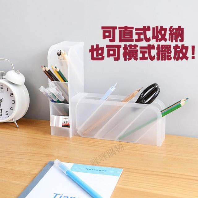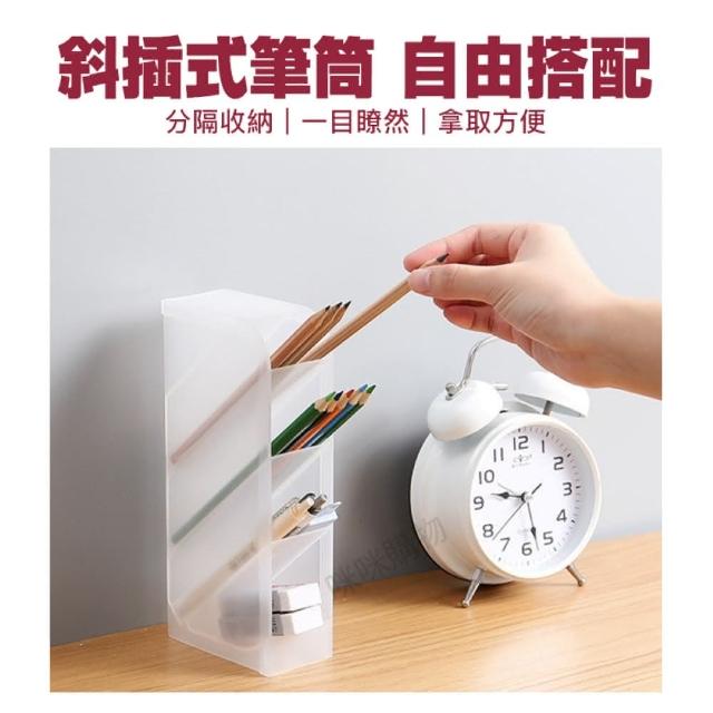 咪咪購物斜插式筆筒|四格方形大號|一入(多格分隔筆筒 透明筆筒 斜筆筒 多功能筆筒 筆收納 筆桶 INS磨砂質感 辦公室文具收納 筆筒 筆筒收納盒)