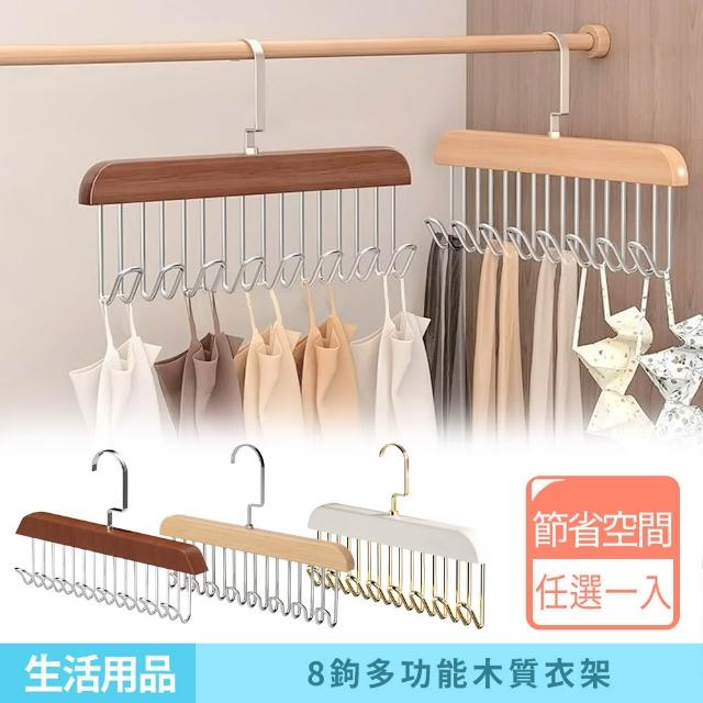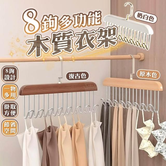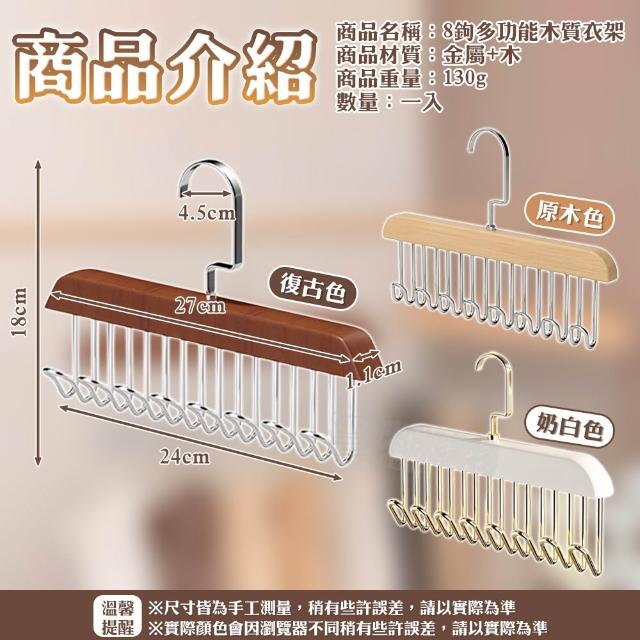 咪咪購物實木掛鉤衣架|八鉤|一入 實木吊衣架 木質衣架 掛衣架 掛鉤衣架 背心衣架 帽子架 木製衣架