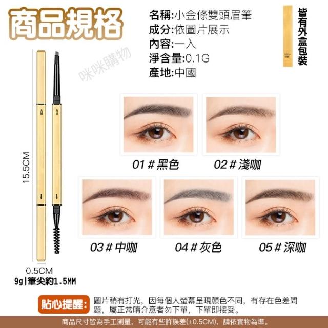 咪咪購物麥歐麗小金條雙頭眉筆|一入(小金筷眉筆 雙頭眉筆 防水眉筆 極細眉筆 灰色 淺棕色 黑色眉筆 旋轉眉筆 三角眉筆 不掉色眉筆)