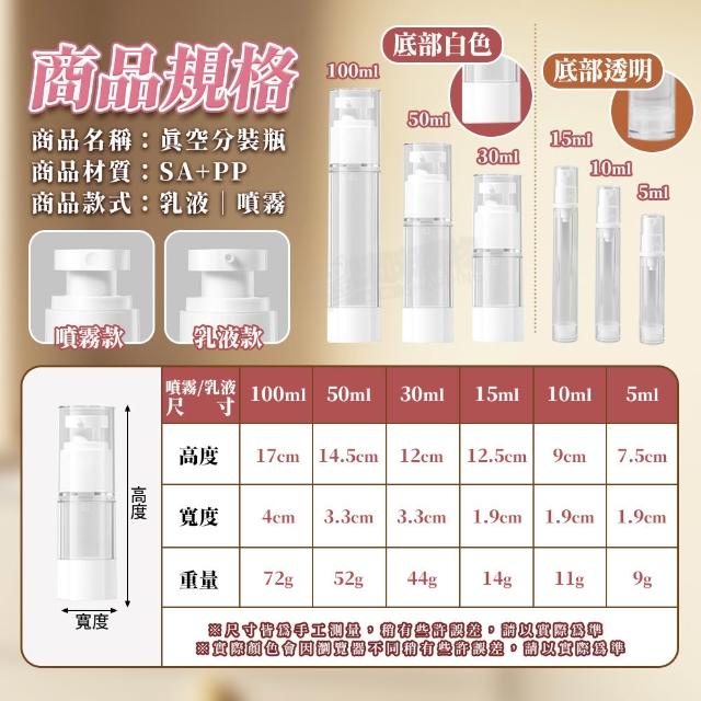咪咪購物真空分裝瓶 旅行分裝瓶 乳液分裝瓶 按壓分裝瓶 30ml 50ml 100m 分裝瓶 噴霧瓶 真空瓶 噴瓶 分裝罐 瓶子