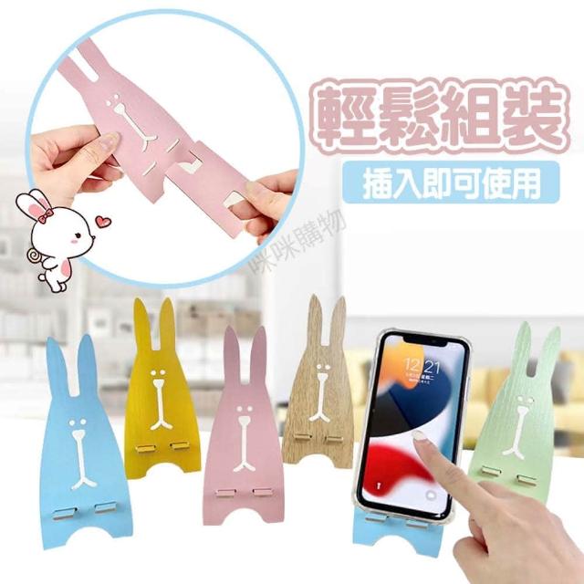 咪咪購物兔子手機架|一入(木頭手機支架 木質手機架 手機支架 手機架 兔子造型手機支架 卡通手機支架)