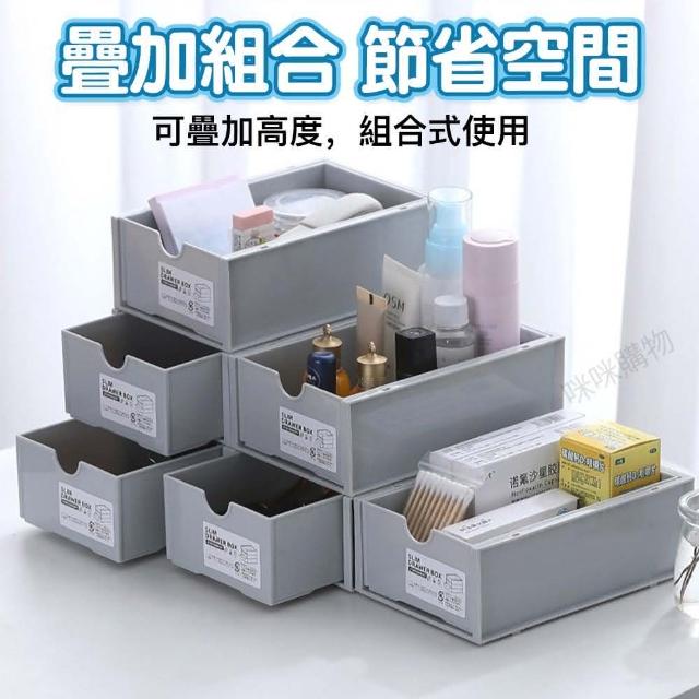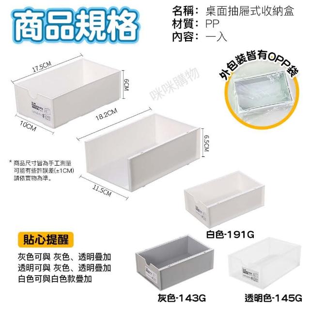 咪咪購物桌面抽屜式收納盒|一入(可堆疊收納盒 白色 灰色 透明 長方型收納盒 桌面收納盒 分隔收納盒 置物盒 整理盒 收納盒 收納箱)