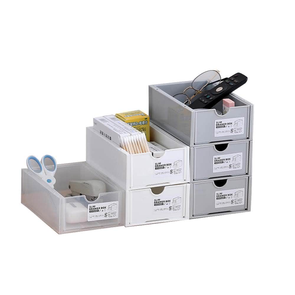 咪咪購物桌面抽屜式收納盒|一入(可堆疊收納盒 白色 灰色 透明 長方型收納盒 桌面收納盒 分隔收納盒 置物盒 整理盒 收納盒 收納箱)