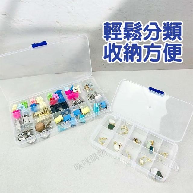 咪咪購物多格透明收納盒|10格有掛勾|一入(分格收納盒 多格收納盒 透明盒 塑膠盒 小收納盒 零件盒 耳夾盒 飾品盒 手飾收納盒 分類收納盒 首飾盒)