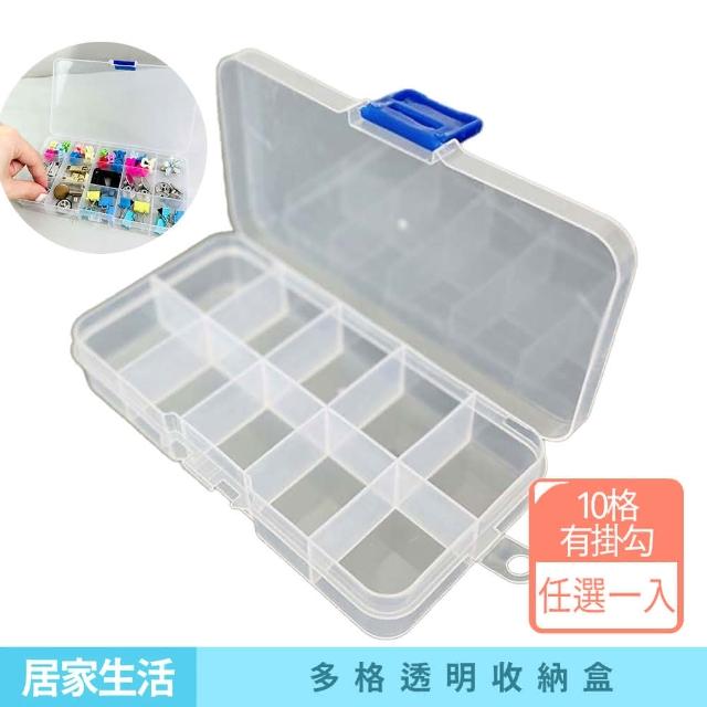 咪咪購物多格透明收納盒|10格有掛勾|一入(分格收納盒 多格收納盒 透明盒 塑膠盒 小收納盒 零件盒 耳夾盒 飾品盒 手飾收納盒 分類收納盒 首飾盒)