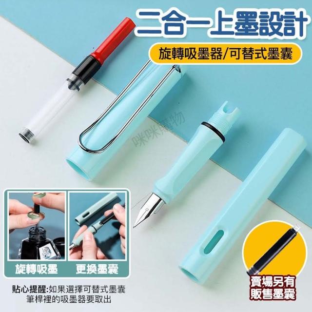 咪咪購物鋼筆式毛筆|附替換式墨水|莫藍迪款|一組(吸墨鋼筆 練字 正握 書寫筆 永生鋼筆 簽字筆 入門鋼筆 金屬鋼筆 鋼筆墨水 硬筆 筆 鋼筆)