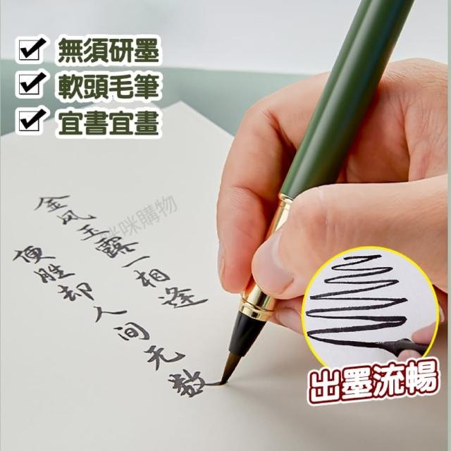 咪咪購物鋼筆式毛筆附替換式墨水|金屬桿款|一組(墨水毛筆 毛筆 抄經筆 軟頭筆 書法鋼筆 書法筆 軟毛筆 毛筆練習書法 練字 小楷筆 墨筆 練字筆 毛筆鋼筆)