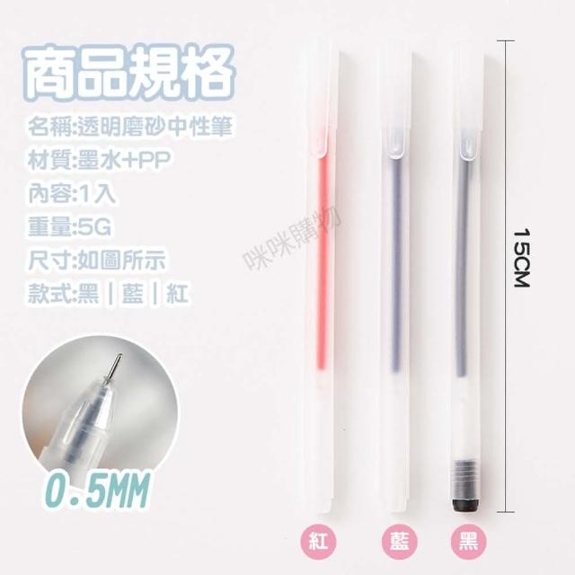 咪咪購物透明磨砂中性筆 |一入(中性筆 0.5mm筆芯 藍筆 黑筆 紅筆 好寫原子筆 學生辦公室文具 磨砂筆 簽字筆 原子筆 筆)