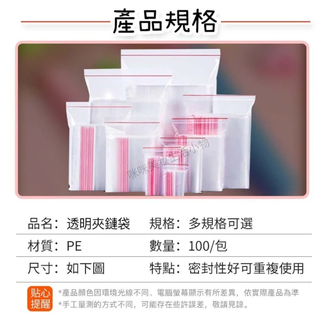 咪咪購物透明夾鏈袋|10號100入|一袋(透明袋 0號~12號 7號 10號夾鏈袋 PE袋 封口袋 OPP袋 大夾鏈袋 小夾鏈袋 零件袋 飾品袋 密封袋 收藏袋 零錢袋 收納袋)