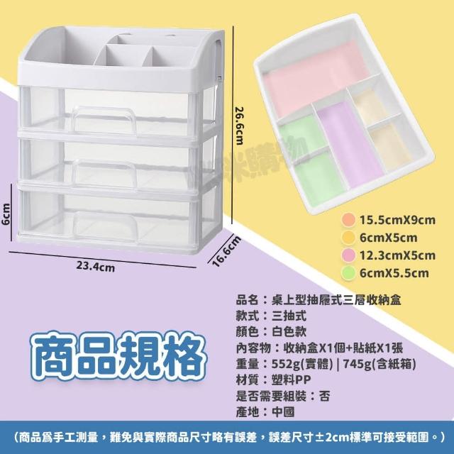咪咪購物桌上型三層收納盒 |一入(日式簡約收納櫃 透明抽屜收納盒 桌面收納 桌上抽屜 文具收納 小物收納 化妝品收納 收納櫃 桌上置物盒 整理盒 白色收納盒)