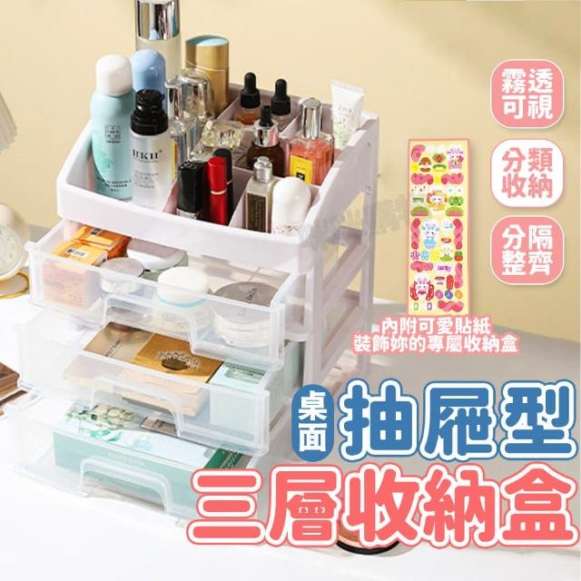 咪咪購物桌上型三層收納盒 |一入(日式簡約收納櫃 透明抽屜收納盒 桌面收納 桌上抽屜 文具收納 小物收納 化妝品收納 收納櫃 桌上置物盒 整理盒 白色收納盒)