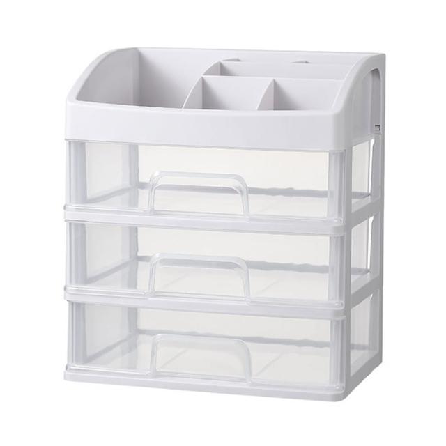 咪咪購物桌上型三層收納盒 |一入(日式簡約收納櫃 透明抽屜收納盒 桌面收納 桌上抽屜 文具收納 小物收納 化妝品收納 收納櫃 桌上置物盒 整理盒 白色收納盒)