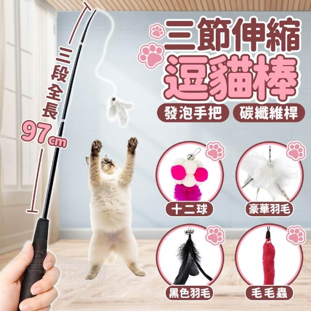 咪咪購物貓咪三節伸縮逗貓棒 超長逗貓棒 釣竿逗貓棒 逗貓替換頭帶鈴鐺 羽毛 毛球 逗貓桿 逗貓棒 逗貓玩具 貓咪玩具 寵物玩具