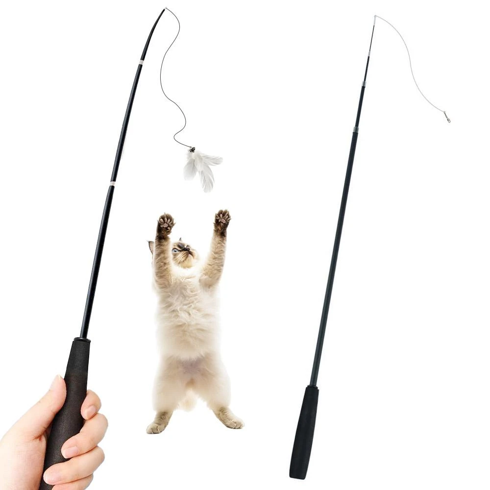 咪咪購物貓咪三節伸縮逗貓棒 超長逗貓棒 釣竿逗貓棒 逗貓替換頭帶鈴鐺 羽毛 毛球 逗貓桿 逗貓棒 逗貓玩具 貓咪玩具 寵物玩具