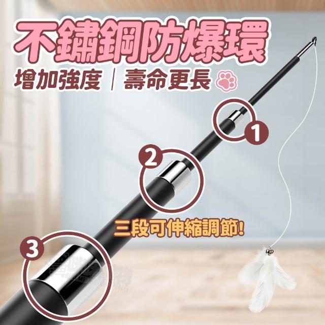 咪咪購物貓咪三節伸縮逗貓棒 超長逗貓棒 釣竿逗貓棒 逗貓替換頭帶鈴鐺 羽毛 毛球 逗貓桿 逗貓棒 逗貓玩具 貓咪玩具 寵物玩具
