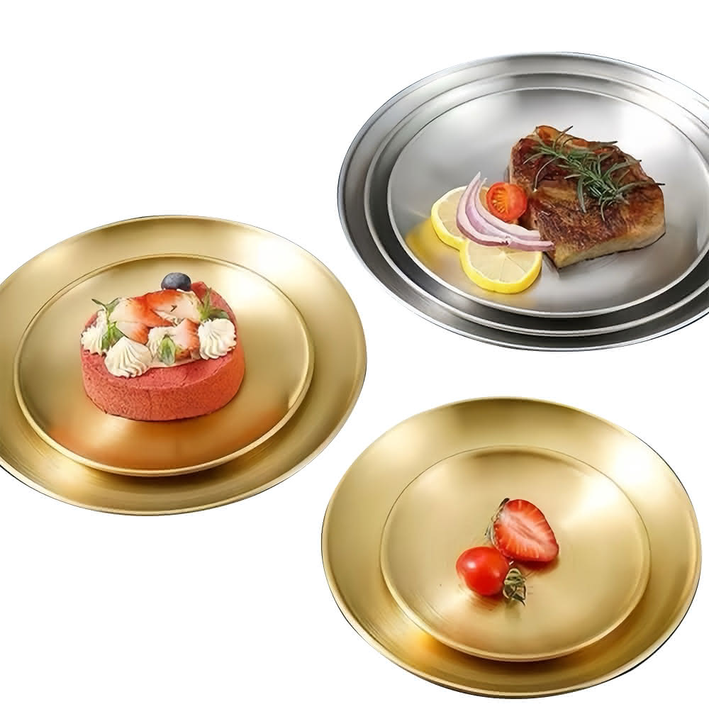 咪咪購物不鏽鋼圓盤| 20cm(烤肉盤 餐盤 大圓盤 小圓盤 不銹鋼盤 早午餐盤 橢圓盤 水果盤 淺盤 蛋糕盤 菜盤 露營盤 韓式烤盤 碟子)