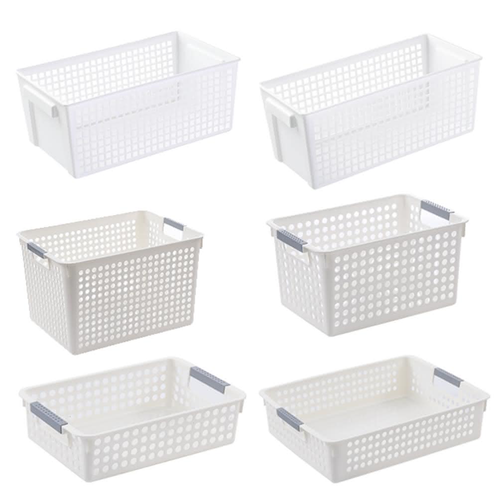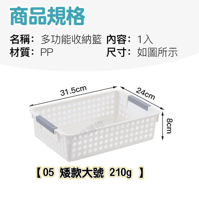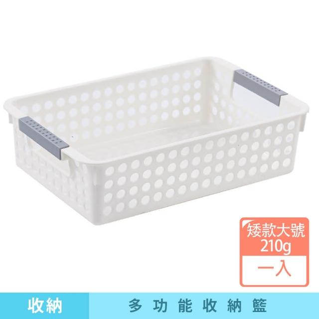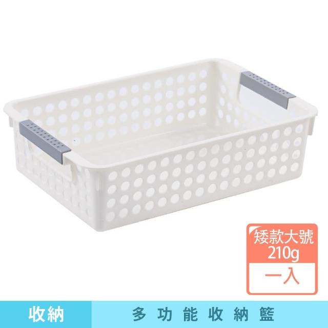 咪咪購物多功能白色收納籃|矮款大號|一入(收納籃 白色收納籃 收納盒 網格收納籃 置物籃 置物盒)
