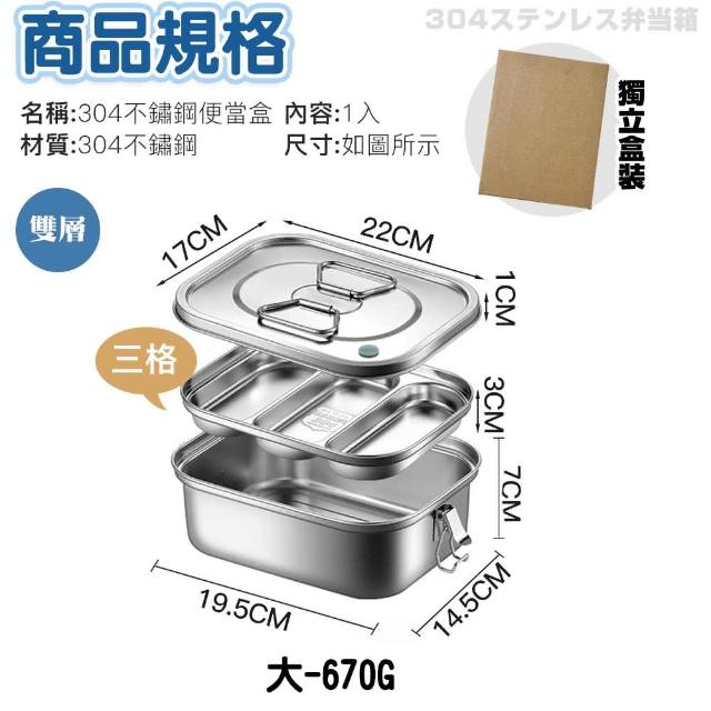 咪咪購物304不鏽鋼便當盒|雙層大號|一入(可微波不鏽鋼保鮮盒 分隔便當盒 可蒸便當盒 可微波餐盒 不鏽鋼飯盒 飯盒 餐盒 便當盒)