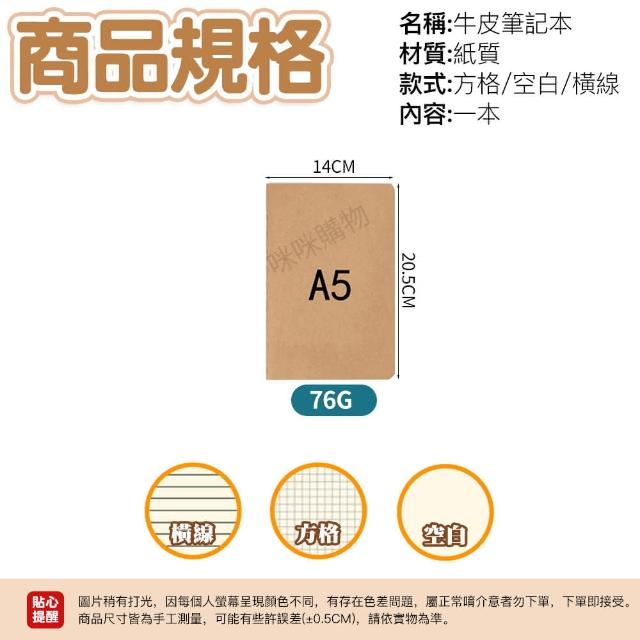 咪咪購物A5牛皮筆記本10本 空白筆記本 方格筆記本 格子筆記本 橫線筆記本 簡約質感 笔记本 計算紙 記事本 筆記本