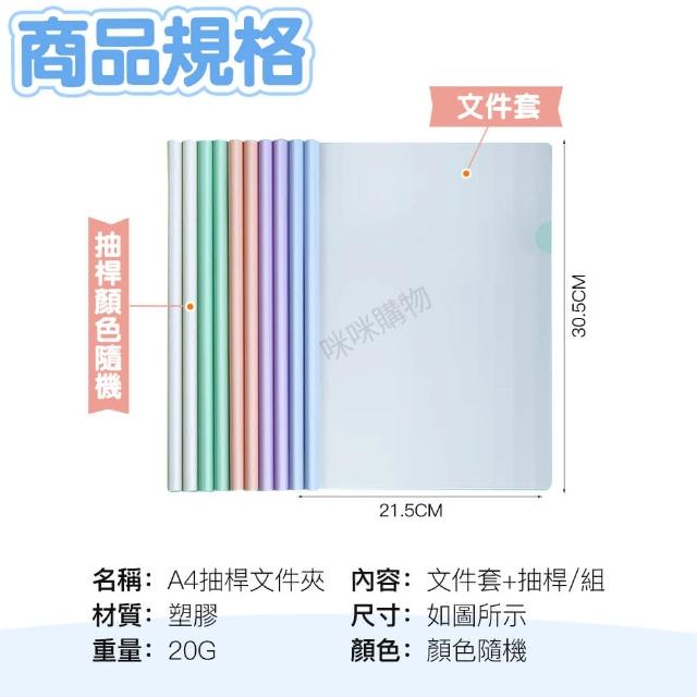 咪咪購物A4抽桿文件夾10入|一包 資料夾 文件夾 檔案夾 訂單夾 拉桿夾 收納夾 A4文件夾 透明文件夾 透明資料夾 文具 辦公用品