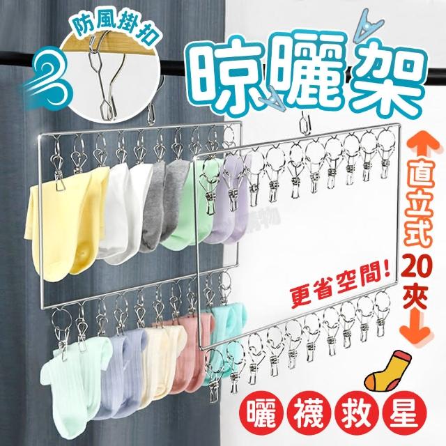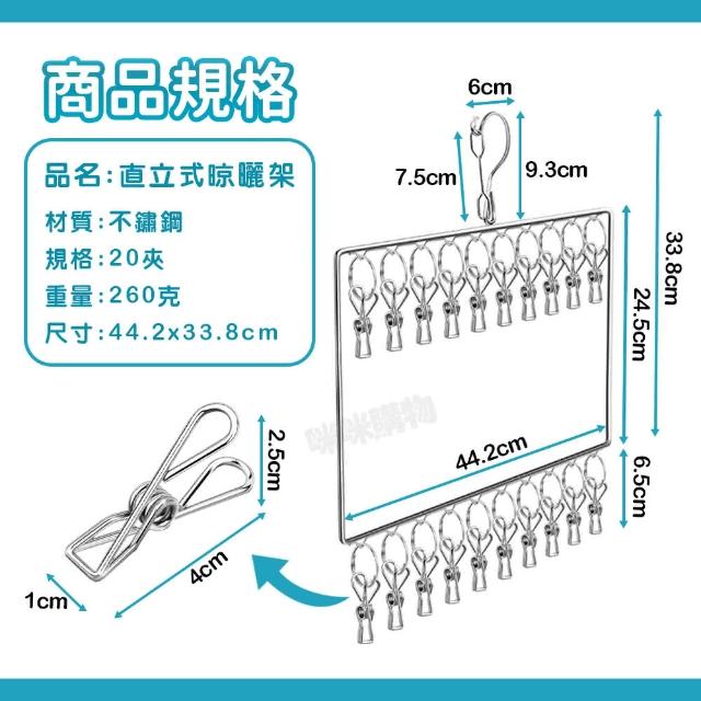 咪咪購物直立式晾曬架|20夾 曬襪架 曬內褲 曬襪子 曬襪 曬毛巾 曬內衣架 折疊曬架 晾曬架 曬襪夾 襪夾 雙層曬衣架 不銹鋼晾衣架 衣架 衣夾)