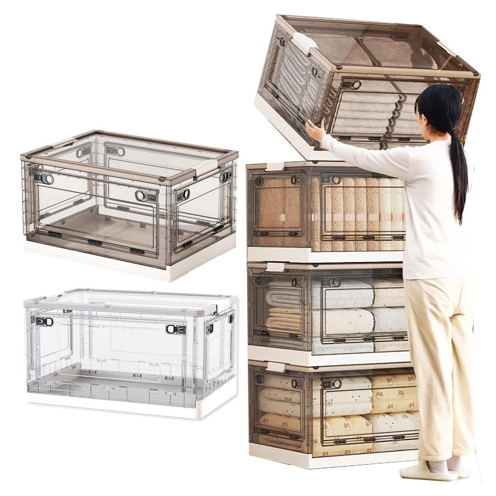 咪咪購物折疊收納箱 透明收納箱 整理箱 側開收納箱 儲物箱 置物箱 棉被收納箱 衣物收納箱 玩具收納箱 塑膠收納箱 收納櫃 收納盒