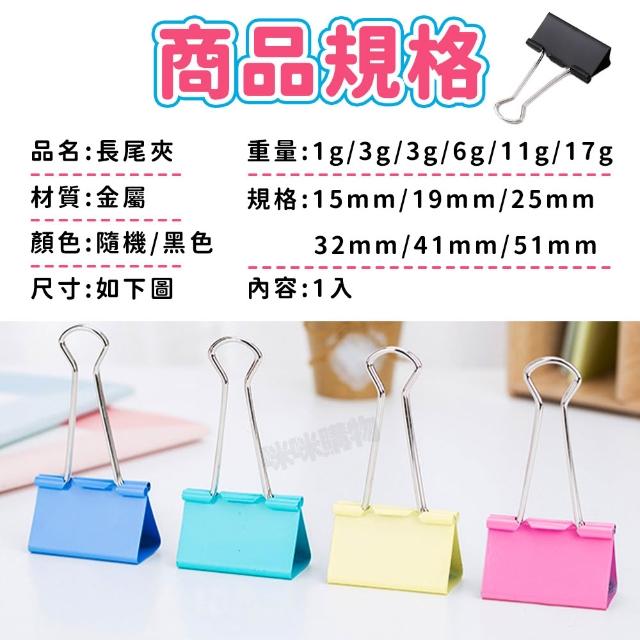 咪咪購物長尾夾 15 19 25 32 41 51mm 夾子 燕尾夾 票據夾 文件夾 書夾 開口夾 鐵夾 金屬夾 文具 辦公用品