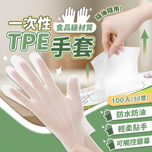 咪咪購物一次性TPE手套100入 透明手套 塑膠手套 TPE手套 一次性手套 拋棄手套 衛生手套 染髮手套 清潔手套 手扒雞手套