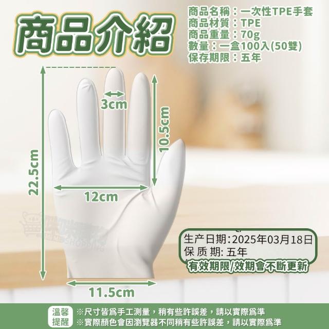 咪咪購物一次性TPE手套100入 透明手套 塑膠手套 TPE手套 一次性手套 拋棄手套 衛生手套 染髮手套 清潔手套 手扒雞手套