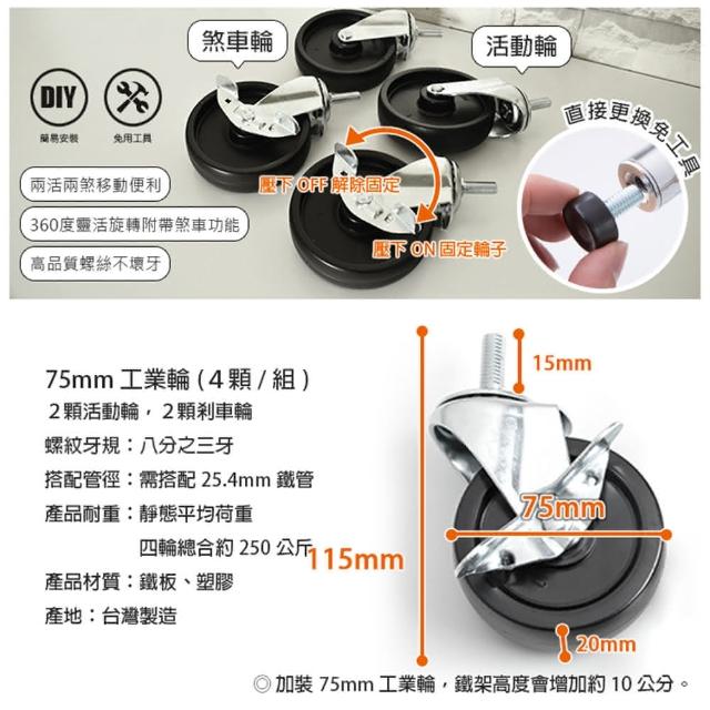 A+探索生活75MM工業輪 2活動輪+2剎車輪 一組四個(鐵架配件/置物架/波浪架/層架/收納架/鐵力士架/貨架)