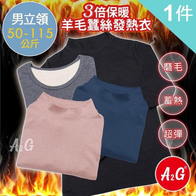 A2G男半立領 挺版羊毛蠶絲 磨毛蓄熱保暖發熱衣 紮實可單穿&內搭 親膚柔軟透氣 彈力不鬆垮 589 台灣現貨