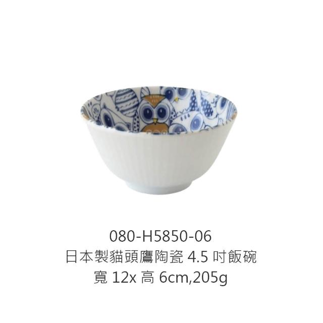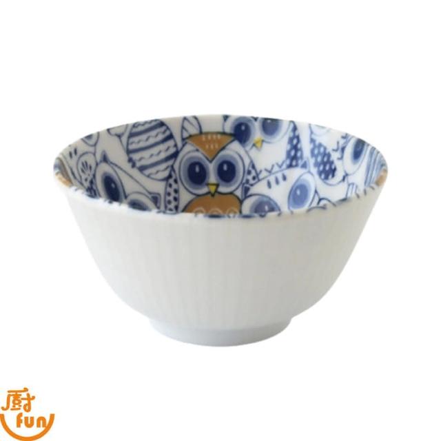 廚Fun日本製貓頭鷹陶瓷4.5吋飯碗12x6cm(麵碗 飯碗 湯碗 瓷碗)