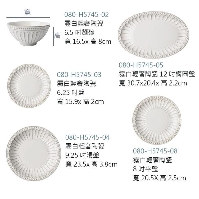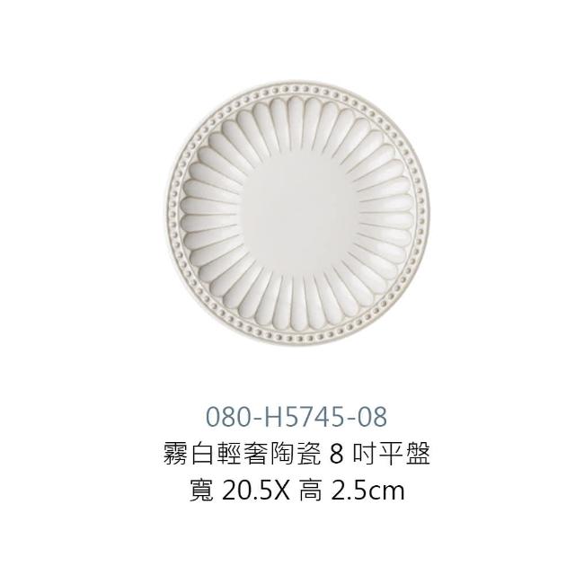 廚Fun霧白輕奢陶瓷8吋平盤20.5X2.5cm(盤 飯碗 圓缽 麵碗 陶瓷碗 陶碗 盤 盤子 碗盤 圓盤 湯碗 餐盤 陶瓷碗盤 平盤 橢圓盤 麵碗 陶瓷盤 陶瓷碗)