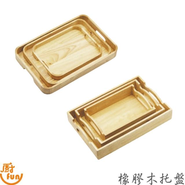 廚FunM411-38橡膠木托盤-長方圓角38x28x3.6cm(木托盤 木製托盤 橡膠木盤 長方木托盤 圓角木托盤 把手木托盤 深托盤)