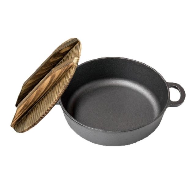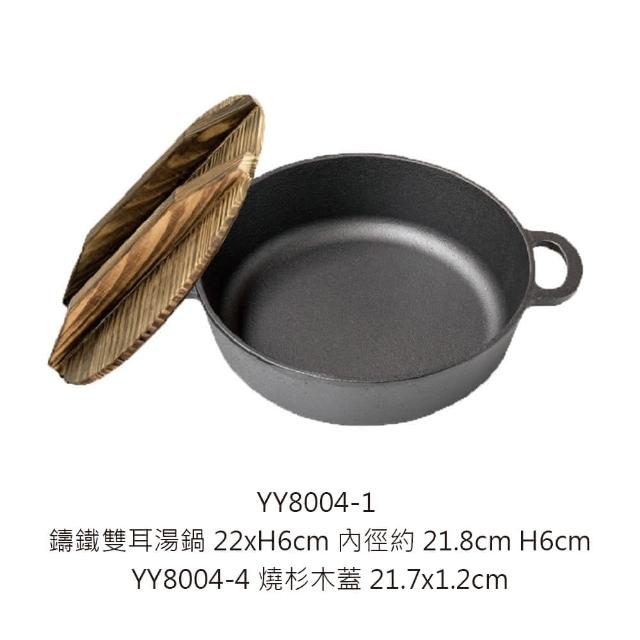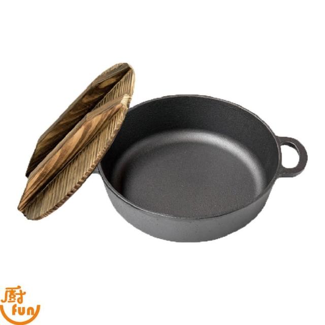 廚Fun鑄鐵雙耳湯鍋22*H6cm+木蓋(鑄鐵鍋系列 鑄鐵雙耳湯鍋 鑄鐵缽 鑄鐵手挽煲 鑄鐵雙耳鐵煲 鑄鐵家用鐵煲 鑄鐵呷哺鍋 鑄鐵鍋 鑄鐵煲)