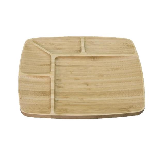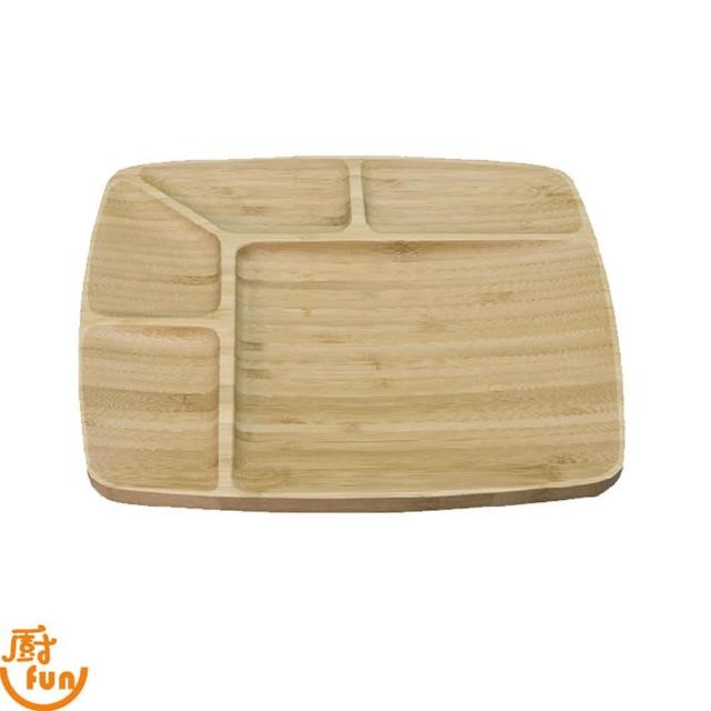 廚FunM114-25 斜邊竹餐盤-正方五格(竹餐盤 餐盤 造型竹餐盤 可愛竹餐盤 竹盤 圓弧餐盤 兒童餐具 兒童 國小餐具)