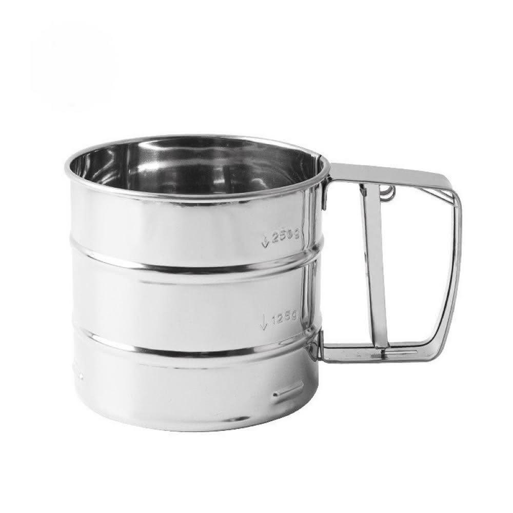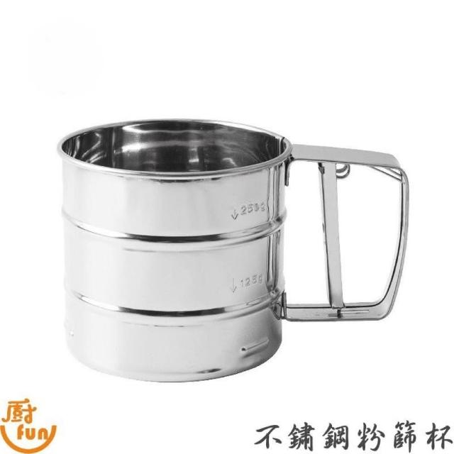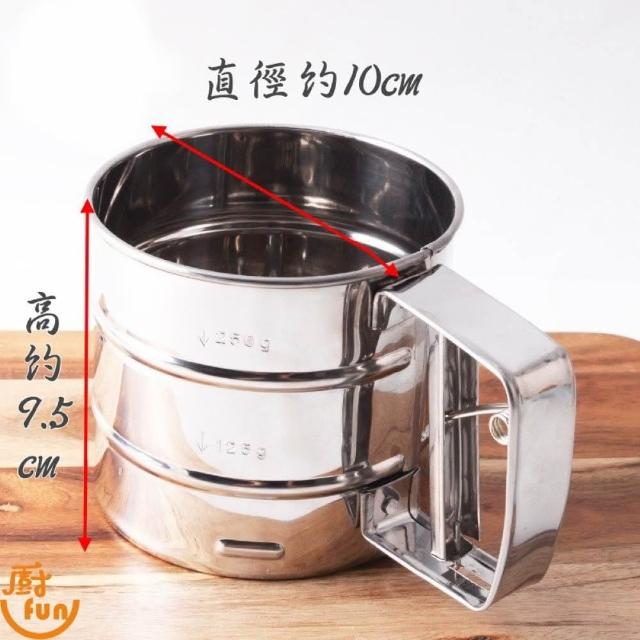 廚Fun手壓式不鏽鋼粉篩杯/24目(麵粉篩 粉篩杯 不鏽鋼麵粉篩 手持麵粉篩 粉篩 烘培器具 麵包粉篩)