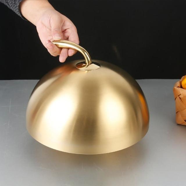 廚Fun彎頭鐵板燒蓋28cm-金(彎把鐵板燒蓋 不鏽鋼鐵板燒蓋 金色鐵板燒蓋 鐵板燒鍍蓋 圓形鐵板燒蓋)