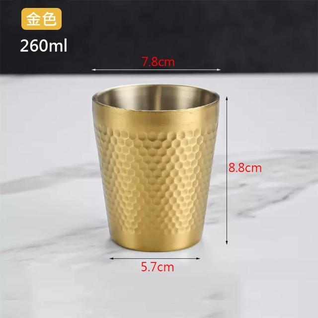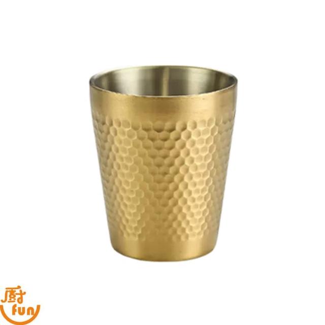 廚Fun304雙層蜂巢紋水杯 金 260ml-7.8*8.8cm(304雙層蜂巢紋水杯 錘紋不鏽鋼雙層水杯)
