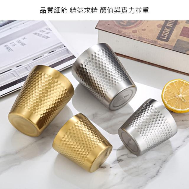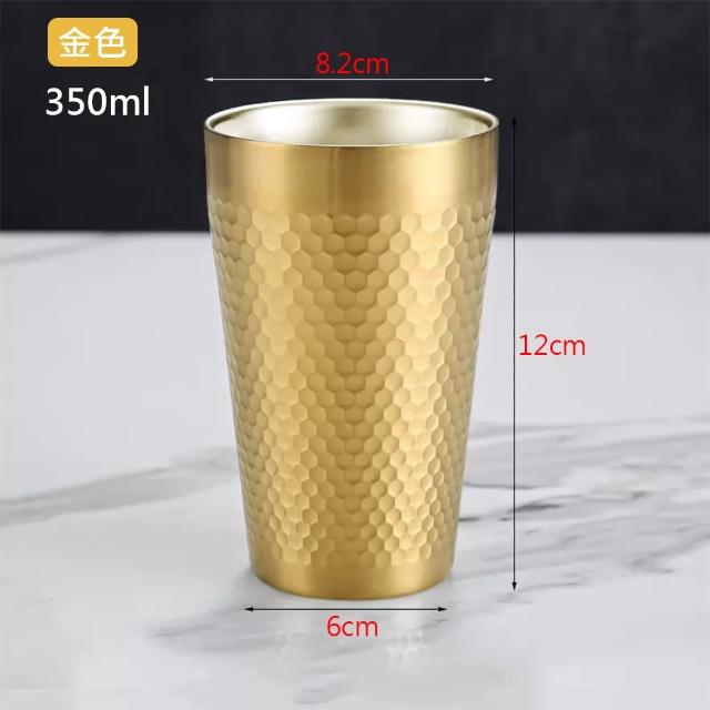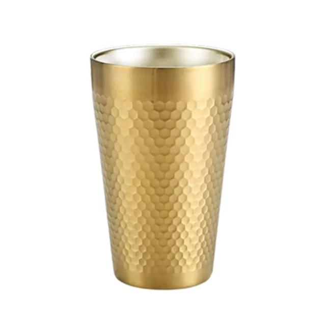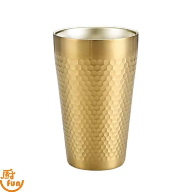 廚Fun304雙層蜂巢紋水杯 金 350ml-8.2*12cm(304雙層蜂巢紋水杯 錘紋不鏽鋼雙層水杯)