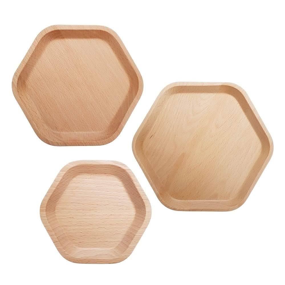 廚Fun6061-1六角餐盤-S 12.5cm(六角盤 六角醬碟 醬料碟 點心盤 水果盤 糕點盤 造型六角盤 六角木盤 櫸木盤)