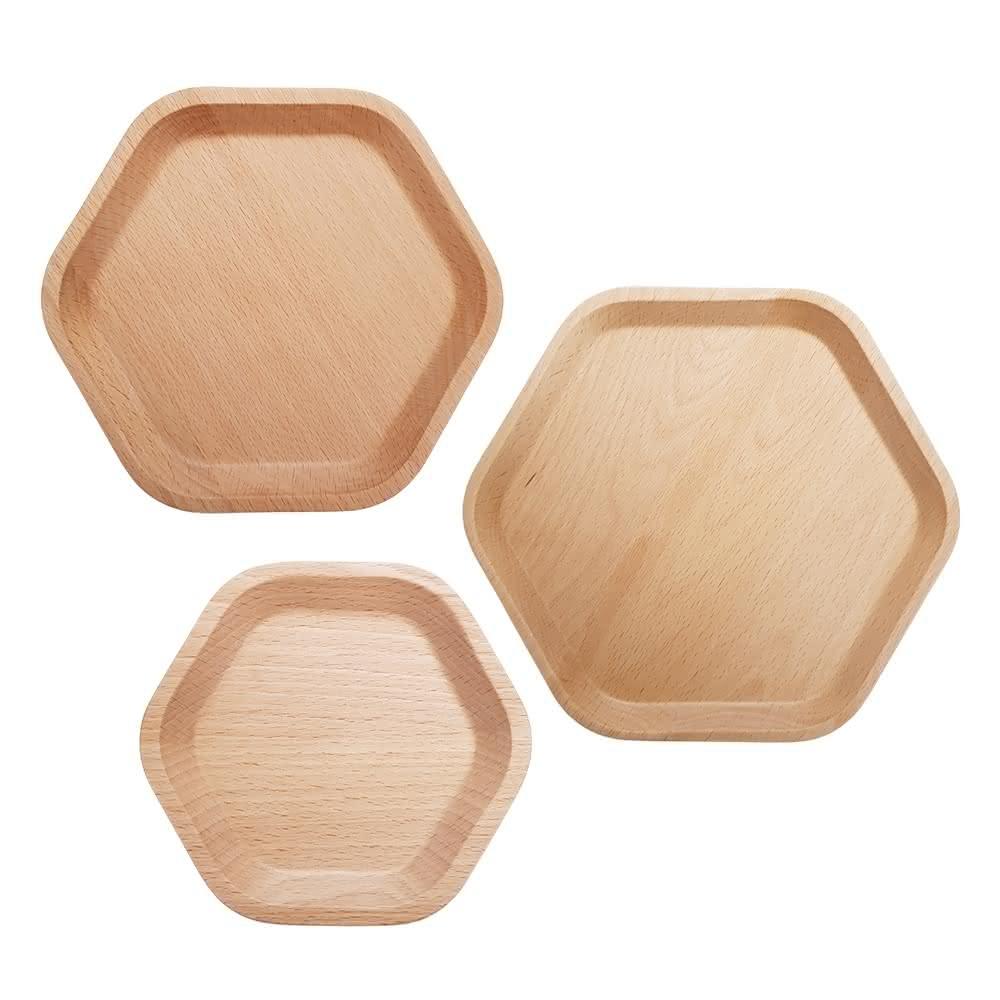 廚Fun6063-1六角餐盤-L 22.5cm(六角盤 六角醬碟 醬料碟 點心盤 水果盤 糕點盤 造型六角盤 六角木盤 櫸木盤 木盤 盤 碟 小菜盤)