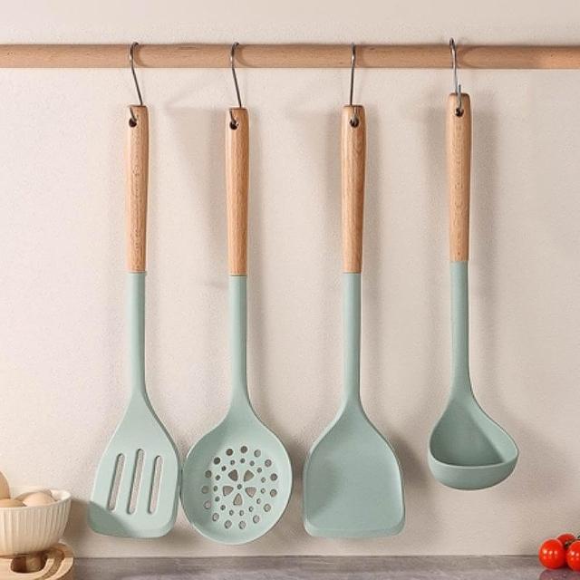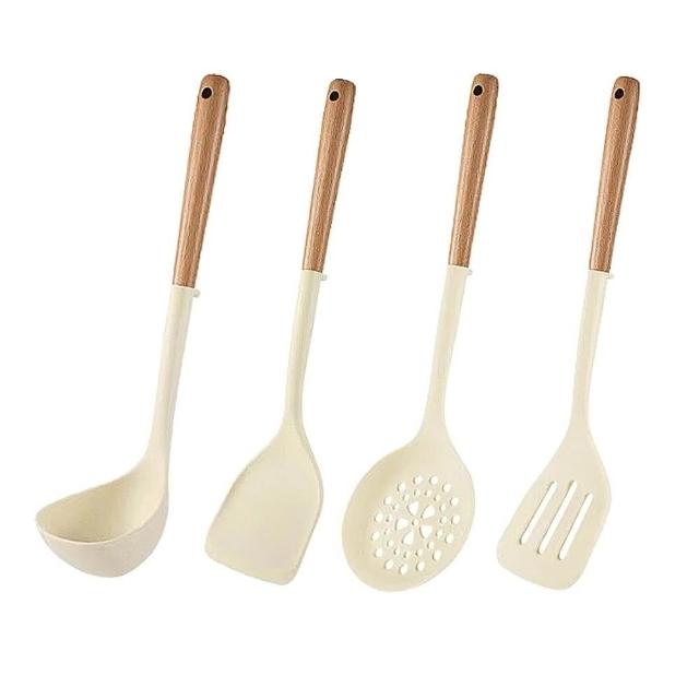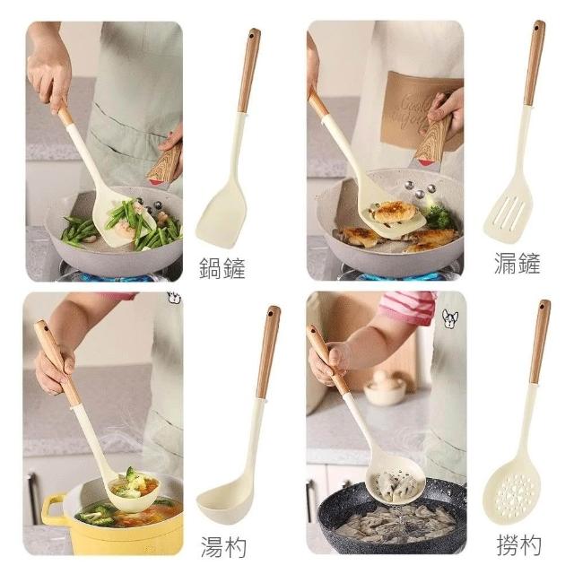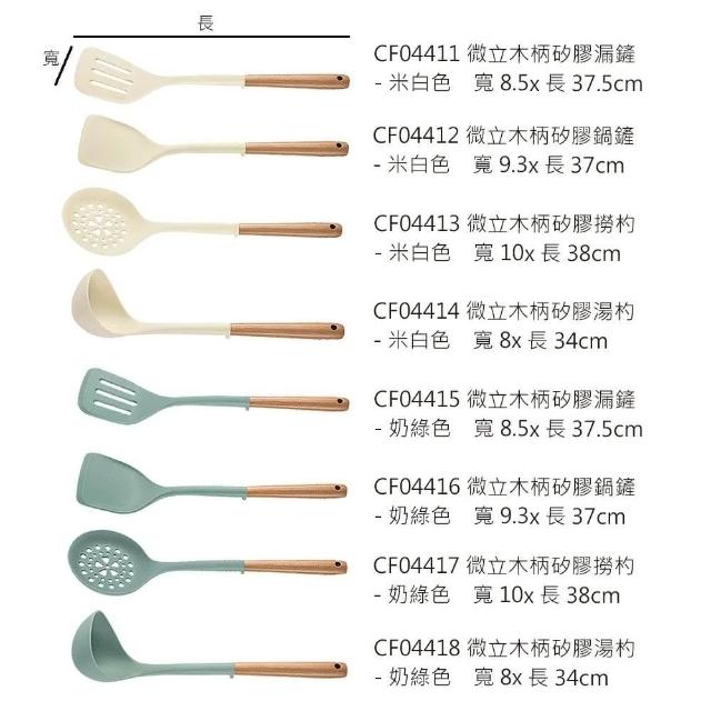 廚Fun微立木柄矽膠廚具(微立木柄矽膠廚具 矽膠鍋鏟 矽膠湯杓 矽膠漏杓 湯杓 煎鏟 煎匙 漏鏟 漏杓 矽膠廚具 不沾鍋廚具)