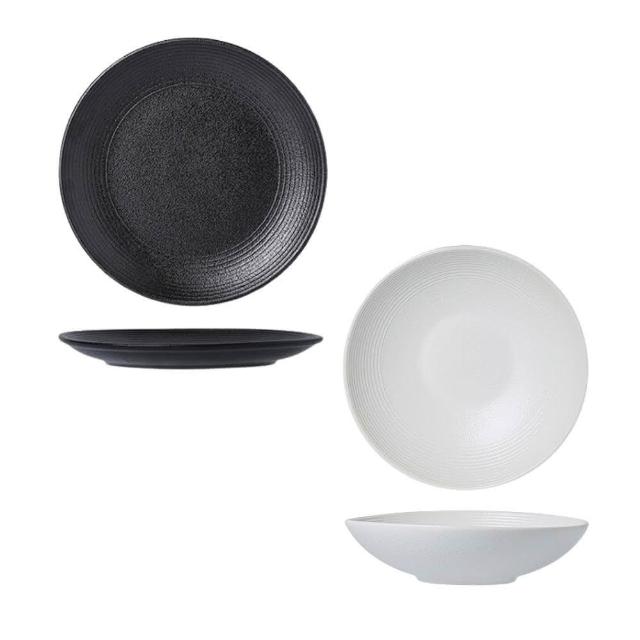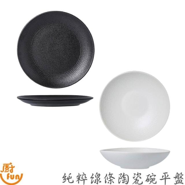 廚Fun純粹線條陶瓷碗平盤 陶瓷碗 陶瓷盤 碗盤 飯碗 碗 湯碗 盤子 平盤 盤 瓷盤 瓷碗 寬口碗 沙拉盤 甜點盤 黑瓷盤