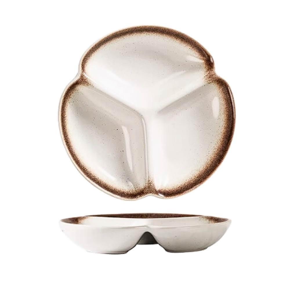 日式粗陶三格圓盤
