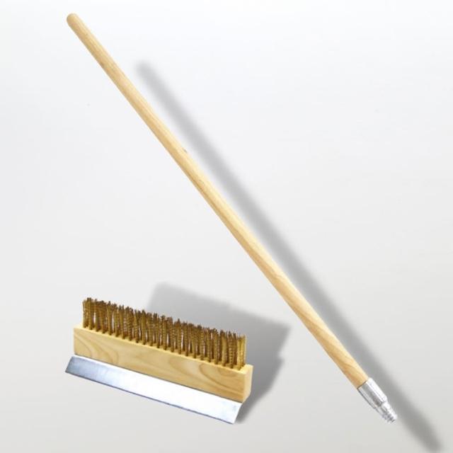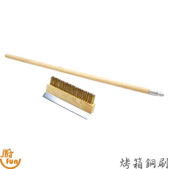 廚Fun烤箱銅刷 長木柄烤箱銅刷 窯烤爐清潔銅刷 烤箱刷 木柄金絲刷毛烤箱刷 不銹鋼刮鏟刷 銅刷 刷具 清潔刷